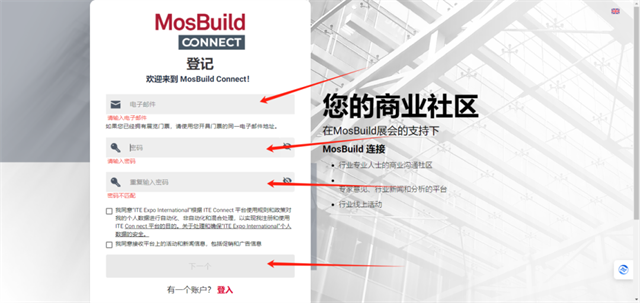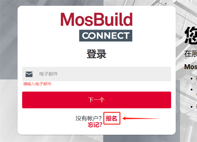 如未收到郵件,您可在PC端輸入鏈接:mosbuild-connect.com,即可打開connect注冊。