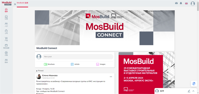 展團(tuán)月底即將出發(fā),在此公布一則好消息:主辦方為本屆展商贈上俄羅斯建筑領(lǐng)域線上商業(yè)社區(qū)——MosBuild Connect,助力大家在展會上獲得訂單!