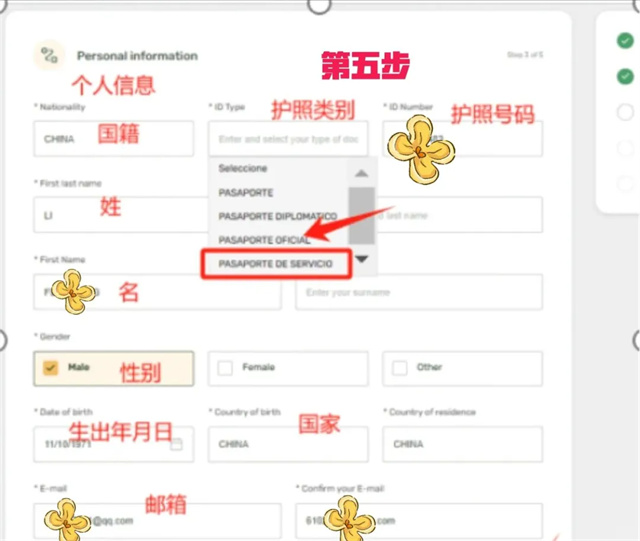 圖五,填寫“個人信息”,有一個要注意的,first name 這里要 3 個字符以上,如果你的姓只有 2 個字符是進行不了下一步,我是填了姓+名+姓這樣通過了,比如馬冬梅,MA+DONGMEI+MA 其中有一項是你是否持有哥倫比亞簽證,如有,選“YES”,簽證類別只有“V”(你看看簽證頁 Type 是 V 開頭的,放心填),“簽證類型”根據自己的情況來選:如有美簽就選美簽,有效期至少要有 180 天。 是否攜帶超 10000 美元入境,YES or NO,如實填寫。然后進到最后一步,A 開頭的是同意,提交,立即出來可下載的文件,下載保存即可(同時也會收到一份確認郵件,郵件附件和你在線下載的文件是一樣的) 。