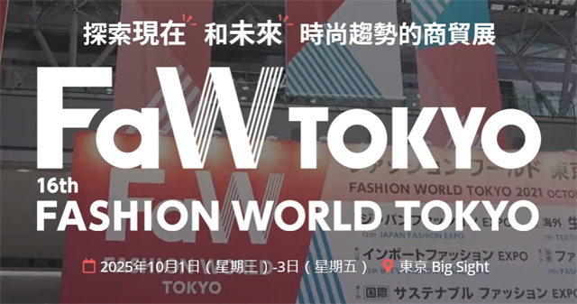 日本東京時尚產業展 Fashion World TOYKO 是亞洲最大的服裝配飾及鞋包貿易展覽會之一。展會主辦方日本勵展博覽集團(Reed Exhibitions)逐年為展會注入新元素,使最初的時尚配飾展持續擴大展覽面積,同期還舉辦時尚服裝博覽會、東京鞋展、東京箱包、東京男裝國際展,匯集來自全球的1,000 家參展商,集結最新可持續時尚、潮牌男裝女裝、箱包、鞋靴、飾品配件、面料輔料、時尚科技相關產品,是中國企業開拓日本時尚市場的最佳平臺。