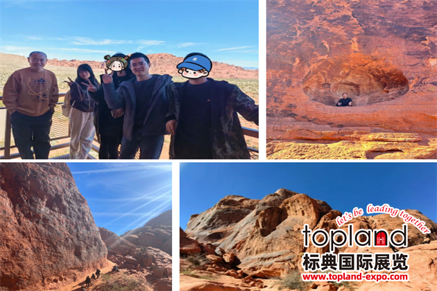 參展之余,新天展團還游覽了內(nèi)華達州的第一個州立公園——火焰谷。火焰谷被稱為地球上最像火星的地方,穿梭在巨大砂巖中,到處都是各種造型的紅色的砂巖,怪石嶙峋,鬼斧神工,如同火焰燃燒一樣。